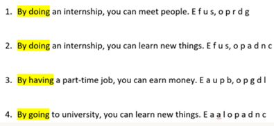 - Provide L1 sentences to translate into L2. For each one, give the first letter of each word in the L2 sentence to help reinforce the correct word order and jog memory.
